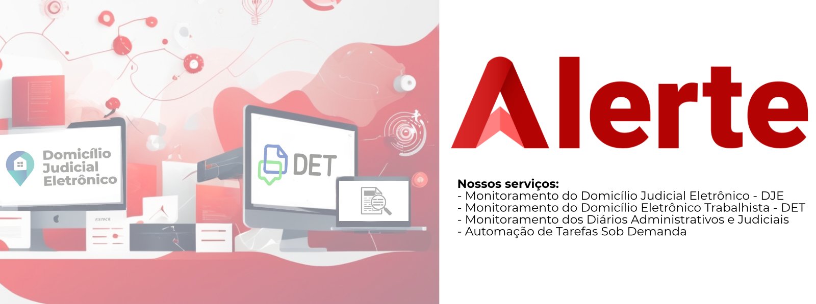 A Alerte é especializada em monitoramento de dados públicos para contadores, com foco em DJE, DET e Diários Administrativos e Judiciais. Desde 2006, desenvolvemos softwares exclusivos para captura de notificações, intimações e processamento de informações, garantindo segurança e eficiência. Nossas soluções personalizadas proporcionam mais agilidade e tranquilidade no seu dia a dia. Conte com a Alerte para otimizar sua rotina e garantir resultados excepcionais.