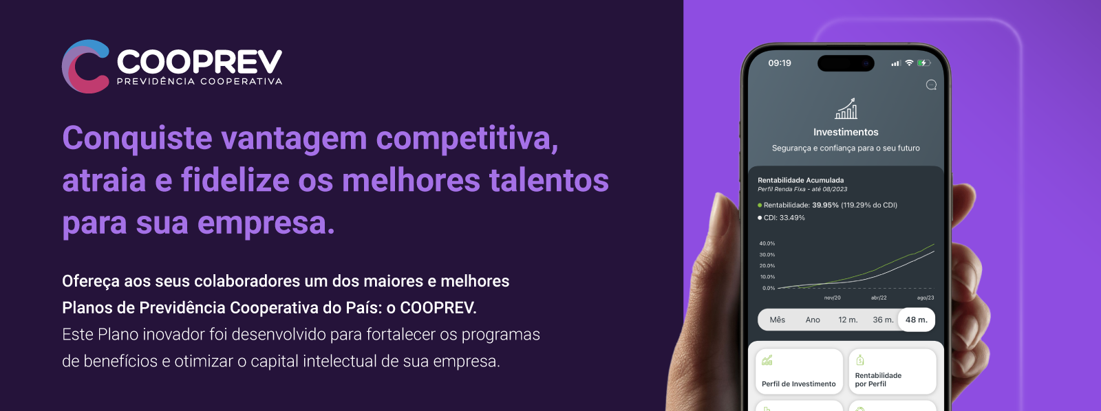 COOPREV: Previdência Complementar Corporativa Empresas inovadoras que valorizam os benefícios para seus colaboradores conquistam uma vantagem significativa! O COOPREV é um Plano de Previdência desenvolvido como uma solução corporativa para beneficiar a todos: empresários, colaboradores e suas famílias. Simples, acessível e completo, o plano se destaca como um diferencial competitivo na atração e retenção de talentos.