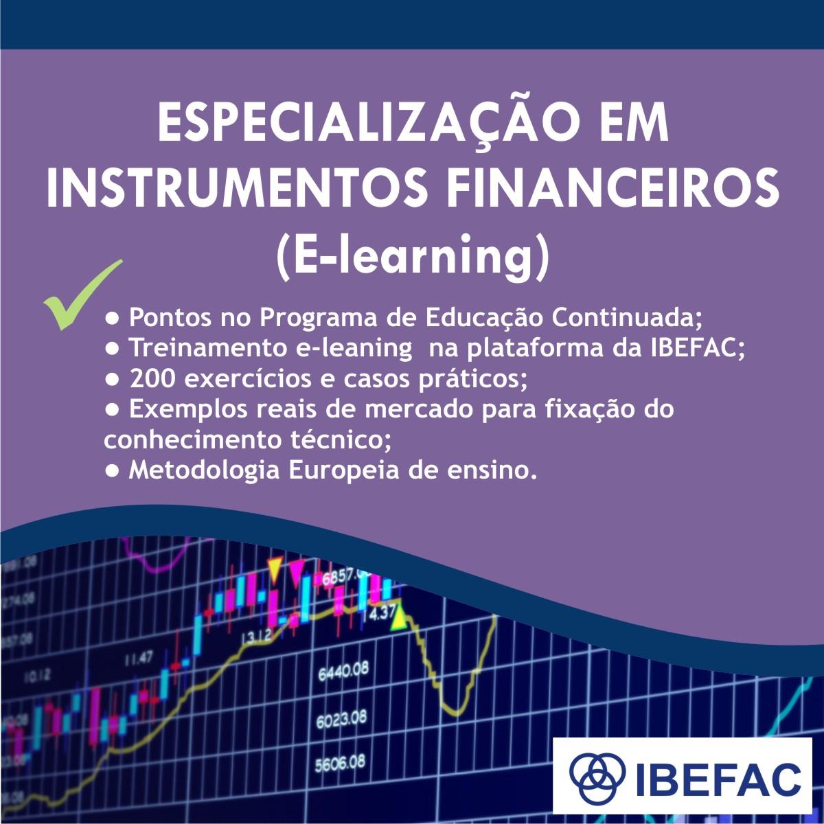 Objetivo Instrumentos Financeiros é uma das áreas da contabilidade que demandam muitos profissionais, pois todas as empresas possuem instrumentos financeiros simples ou complexos. Com as recentes alterações na norma as empresas estão com uma grande carência de profissionais com conhecimentos técnicos. Essas oportunidades são muito boas para quem deseja se qualificar e obter uma especialização. O curso de Especialização em Instrumentos Financeiros no formato e-learning possibilita ao participante estudar de qualquer lugar a qualquer hora. São 20 horas de curso com mais de 200 exercícios práticos e exemplos. Pontos no CRC AUD: 20, CMN: 20, SUSEP: 20, ProGP: 20, Perito: 20, PREVIC: 20, ProRT: 20 Instrutor(es) Treinamento online realizado na plataforma de ensino da IBEFAC, com coordenação de Prof. Nabil Mourad Público-Alvo Todos os profissionais da contabilidade, Peritos, Assistentes, Analistas, Estudantes, Auditores, Controlers, Advogados e todos os demais profissionais que estejam envolvidos de forma direta ou indireta com a contabilidade. Formato – Formato do curso online (E-learning), na Plataforma de e-learning da IBEFAC. – Duração 20 (vinte) horas – Idioma: 100% na língua portuguesa (padrão brasileiro) – Inclui narração detalhada em português (padrão brasileiro), comentários, teoria, simulados, exercícios práticos e certificado de conclusão emitido automaticamente pelo sistema. – Inclui 200 exercícios e atividades práticas e dinâmicas – Período de utilização da licença e acesso à plataforma 60 (sessenta dias) – Excelente material de estudo para obtenção de certificações em Instrumentos financeiros – Acesso via internet do trabalho e em casa. – Certificado de conclusão emitido para todos os participantes – Considerado o melhor e-learning de instrumentos Financeiros na língua portuguesa disponível no mercado. – Metodologia europeia de ensino de contabilidade, possibilitando uma rápida e eficiente absorção do conhecimento técnico. Programa NBC 48 – IFRS 9 – Instrumentos Financeiros – Mensuração. NBC 40 – IFRS 7 – Divulgações sobre instrumentos financeiros e gestão de riscos. NBC 39 – IAS 32 Instrumentos Financeiros – Apresentação. Exercícios, exemplos e casos para fixar o conhecimento.