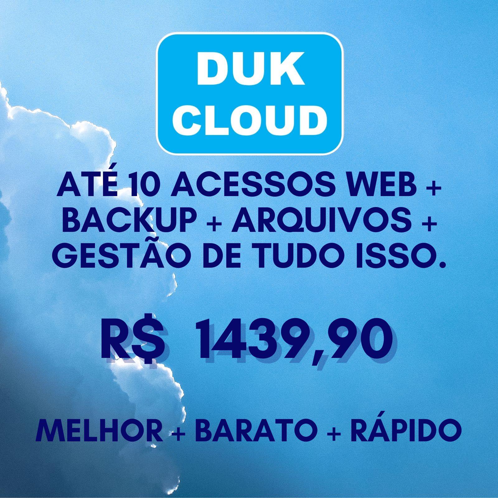 Tudo o que sua empresa precisa para funcionar em uma nuvem privada com toda segurança e podendo ser acessada de qualquer lugar do mundo via Chrome ou qualquer navegador, sem precisar de VPN e MUITO mais RÁPIDO, que qualquer outra nuvem compartilhada ou servidor local. O sistema mais moderno do mundo para sua empresa, todos os sistemas que precisar e com o suporte da Duk para garantir as atualizações e sanar qualquer dúvida sobre o DukCloud. Por quê a Duk é melhor? DukCloud x Concorrentes. - Backup em TEMPO REAL X 2 backups por dia - Sem multa contratual X Fidelidade 12 meses - A maior TI especializada em Contabilidade desde 2007 X Ainda engatinhando. - Valor fixo com o espaço maior + veloz e mais barato x Mais caro e com menos espaço Sede própria com mais de 1500mts atendendo centenas de contabilidade em mais de 15 estados do Brasil. * Acesso 100% Web, de qualquer lugar 24hs. * Acesso por celular ou tablet, Android / IOS. * Segurança com criptografia ponta a ponta de última geração (SSH). * Backup Infinito Integrado (Backup de tudo o tempo todo). * DukStorage (Seu File Server nas Nuvens).